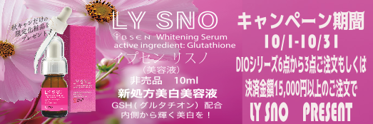 15,000円以上のお支払いで限定イプセングルタチオン美容液LY SNOをプレゼント。